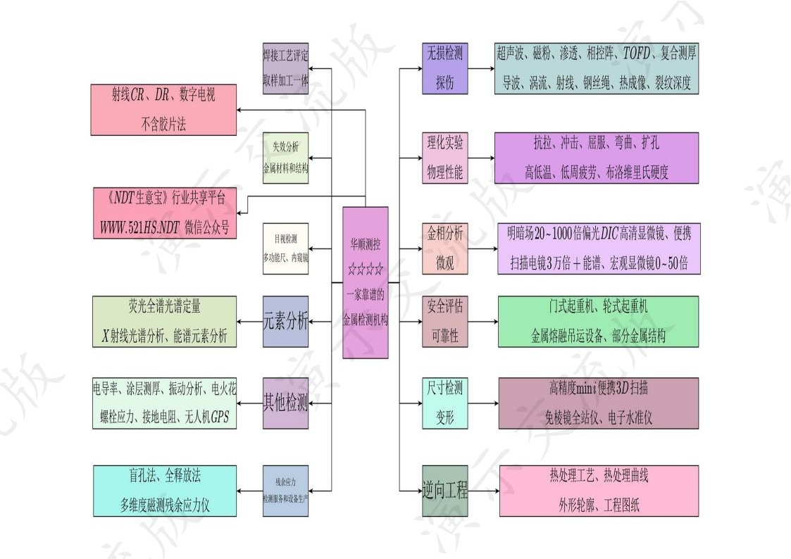 檢測服務:目視檢測、滲透檢測、磁粉檢測、超聲波檢測、鋼絲繩檢測、渦流檢測、