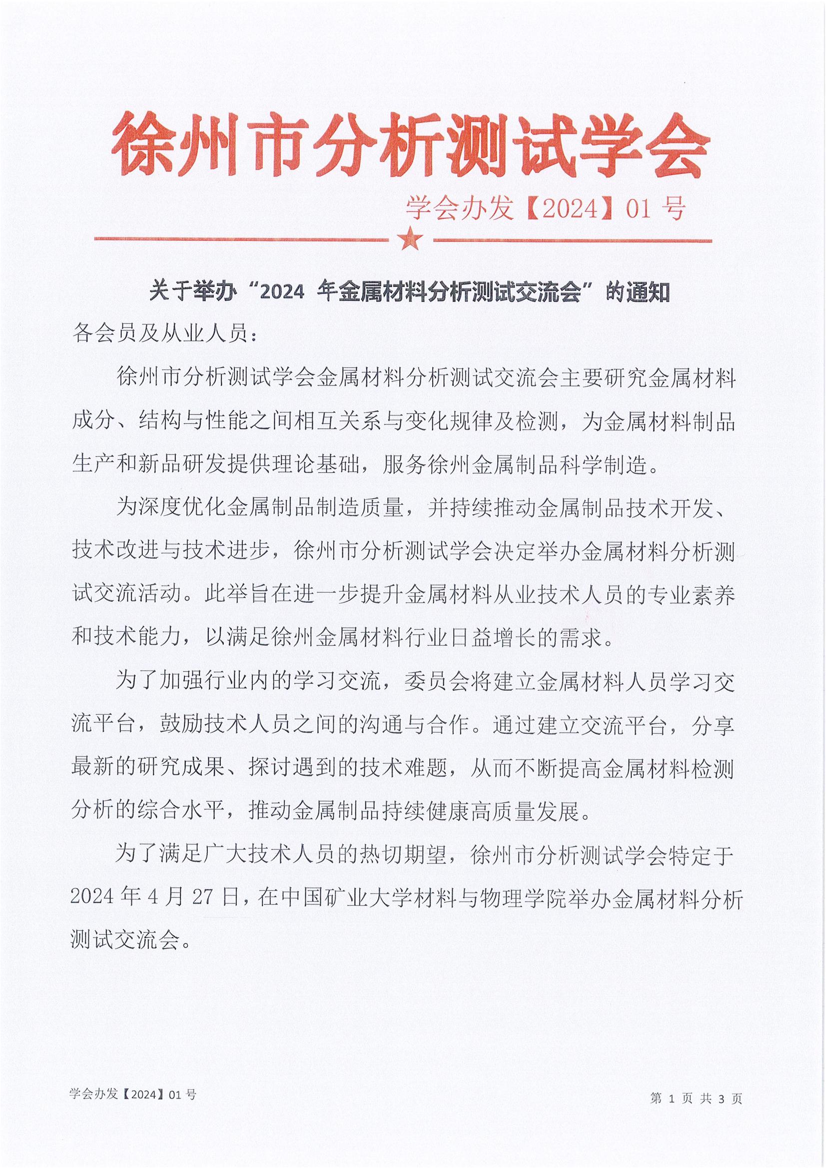 關于舉辦“2024 年金屬材料分析測試交流會”的通知