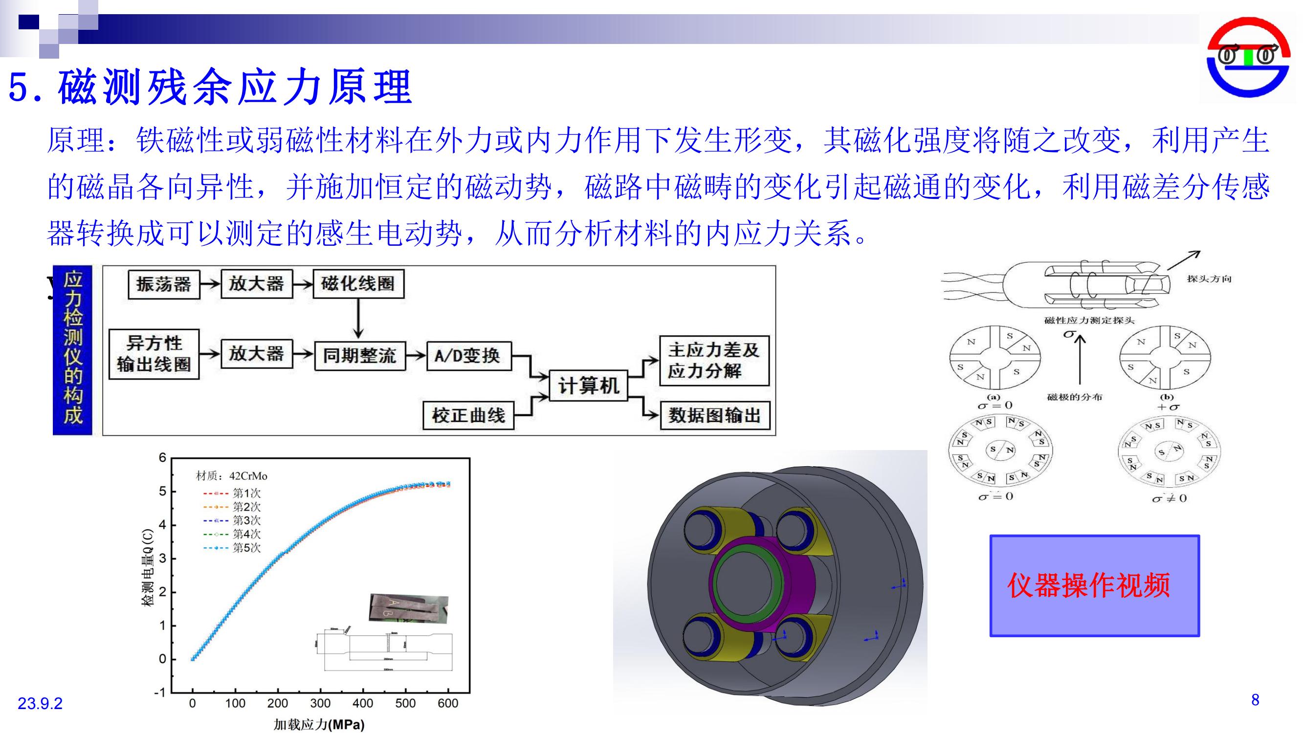 鐵磁性或弱磁性材料在外力或內(nèi)力作用下發(fā)生形變,其磁化強(qiáng)度將隨之改變,利用產(chǎn)生的磁晶各向異性,并施加恒定的磁動(dòng)勢(shì),磁路中磁疇的變化引起磁通的變化,利用磁差分傳感器轉(zhuǎn)換成可以測(cè)定的感生電動(dòng)勢(shì),從而分析材料的內(nèi)應(yīng)力關(guān)系。